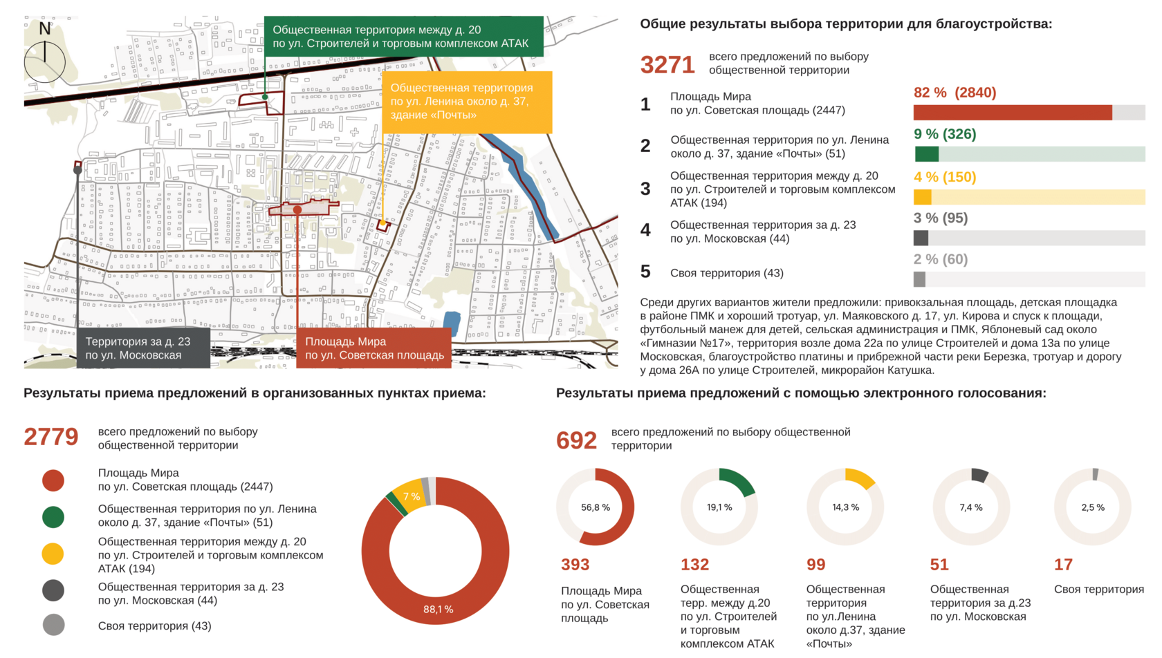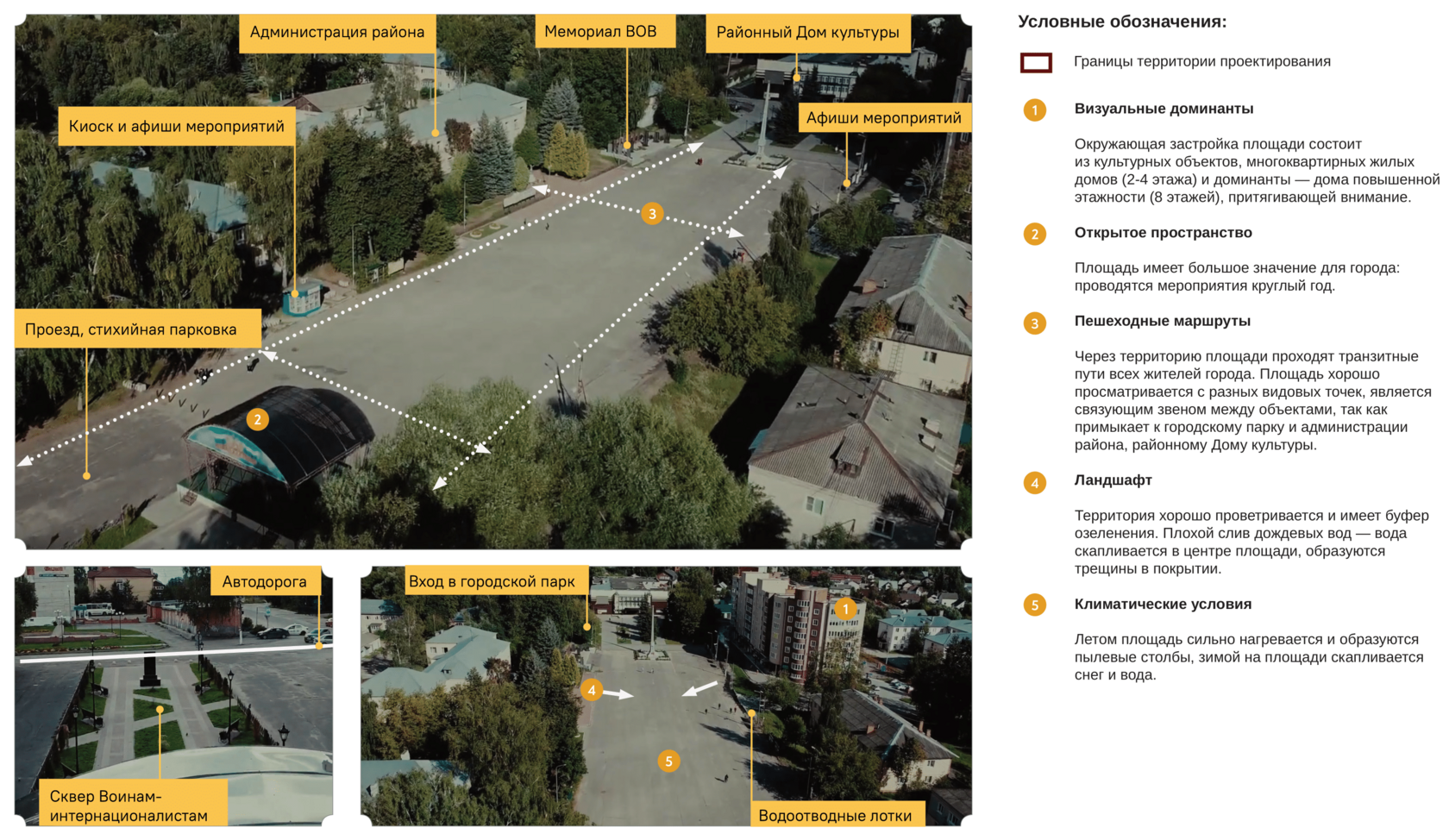 Территория занимает центральное место в общественной жизни города. Является главной многофункциональной точкой притяжения всех жителей города — все мероприятия проходят на площади. Отзывы пользователей лишь подтверждают гипотезу о том, что территория важна для города и позитивно воспринимается местными жителями и гостями города. Раскрыть потенциал места возможно за счет модернизации, обновления инфраструктуры и создания новых функциональных зон.